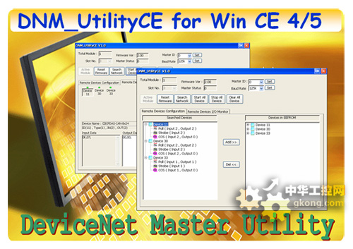 除了多種範例程序外,搭配免費的圖形化工具軟件( DNM_UtilityCE ),讓您能輕易的將DeviceNet的工業設備做完善的整合並提供方便的管理功能,工具中可掃瞄遠程設備並儲存到I-8124W的EEPROM中。當它與DeviceNet slave建立聯機後,便可以讀取每個設備的名稱與I/O的狀態。當您在為客戶規劃網絡或開發應用程序時,這些功能可以幫助您輕易地監控網絡中的所有設備。
