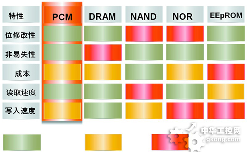 與其他存儲器相比,PCM的綜合性能非常高。