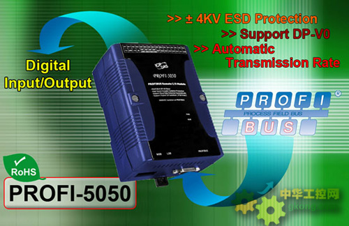 PROFIBUS是一個開放、數字化的通訊係統,它提供了廣大的應用,特別是在工廠自動化以及製程自動化的領域當中。PROFIBUS適合於快速、有實時性需求的應用和複雜的通訊工作。PROFI-5050是泓格開發的PROFIBUS係列產品之一,提供PROFIBUS網絡一個簡易型遠程I/O解決方案,主要目的是可以當作PROFIBUS網絡上的一個從端(slave)設備。可與其它PROFIBUS Master搭配使用。PROFI-5050針對靜電幹擾提供到±4KV等級A的防護。功能強大的PROFI-5050可應用於大樓自動化、遠程數據收集和控製、環境監測、實驗室設備和研究、工廠自動化等等。