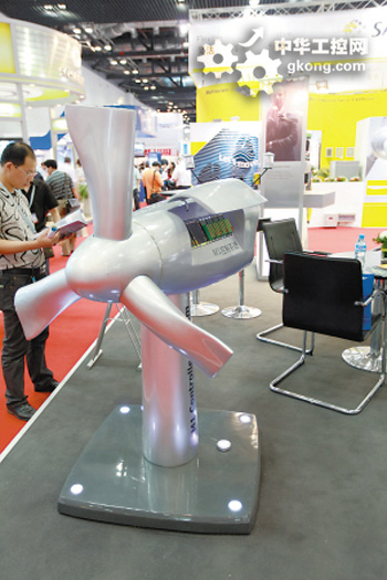 在第七屆亞洲風能大會展覽現場,一家風機設備製造企業展出最新研製的風機葉片控製係統。韓偉 攝