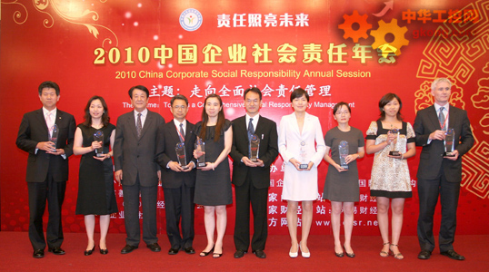 “2010中國企業社會責任年會”由中國外商投資企業協會、中華慈善總會、中國民(私)營經濟研究會和《中國企業報》聯合發起主辦。為了保證評選公平、公正,“2010中國企業社會責任榜”100強編製課題組根據企業反饋的調查問卷和組委會掌握的入庫企業資料,認真研究、分析、比對,從500家候選企業中確定200家入圍企業。社會責任優秀企業推選委員會專家參考“2010中國企業社會責任榜專家評價體係”,根據入圍企業有關數據和材料,對200家入圍企業打分,最終形成“2010中國企業社會責任榜”100強榜單。在這個榜單中,分別居於內資前30位、外資前20位的公司將獲得“2010企業社會責任特別大獎”。