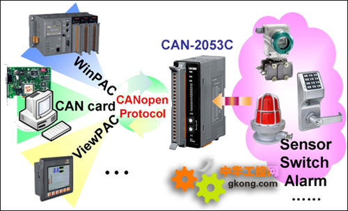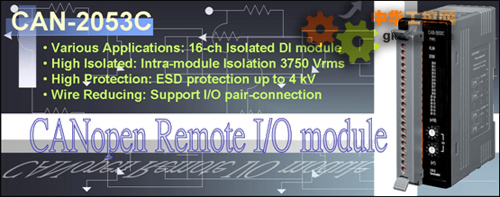CAN-2053C可通過CANopen Network將開關、警報、傳感器等設備的狀態及時回傳給CANopen master