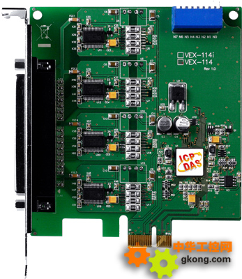 VEX-114串行端口通信卡提供4個RS-232 串行端口並且支持PCI Express總線。每個串行端口都有128-byte的硬件FIFO,通訊速度最高可達到115200 bps。使用者可以使用手動設定DIP Switch的方式指定串行端口號,也可以讓驅動程序自動分配端口號。在Windows底下,驅動程序提供了最大128 KB的軟件FIFO給每個串行端口。串行端口通信卡可廣泛應用於智能設備上,如:條形碼讀取器、串行端口打印機、智能型傳感器、儀器設備、計算機及任何帶有RS-232串行端口的設備。