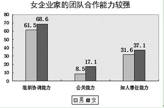 李蘭(全國政協委員、國務院發展研究中心人力資源研究培訓中心副主任):在全球金融危機的背景下,女企業家經營的企業“持平”的比重比男性多2.2個百分點,而虧損的企業比重低於男性,這再次表明女企業家經營的企業更加穩健,抵禦危機的能力相對較強。