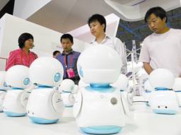 富通彗(北京)科技有限公司的陪伴型機器人,小巧玲瓏,可表達心情,引起了觀眾的濃厚興趣。