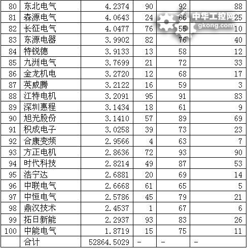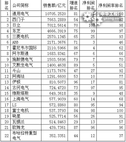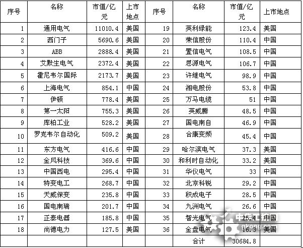 在zai這zhe次ci嚴yan重zhong的de經jing濟ji危wei機ji中zhong,誕dan生sheng超chao過guo一yi個ge半ban世shi紀ji的de電dian氣qi技ji術shu產chan業ye接jie受shou了le曆li史shi上shang少shao有you的de衝chong擊ji,但dan人ren類lei的de繼ji續xu發fa展zhan給gei電dian氣qi技ji術shu的de發fa展zhan帶dai來lai了le無wu比bi光guang明ming的de前qian景jing,以yi節jie能neng、xinnengyuankaifahezhinengdianwangweidaibiaodexinxingjishudedafazhanhewuxianyingyongkongjianzhanxianledianqichanyeshiyigezhengzhengrishangdechaoyangchanye。dianqichanyedefazhanqianjinghekongjiancongjinnianlaidianqijishugongyingshangzaiquanqiuzibenshichangshangdebiaoxianjiukeyikanchu,tebieshizaizhongguozhegequanqiuzuidadexinxingdianqijishuyingyongshichangli,renleizaicifaxianledianqichanyedeguangmingqianjing,chuangjianyigegengmeihaodeshijiexuyaodianqijishuchuangzaogengduodejiazhi。weici,bizhegenjugongkaideshuju,yixiaoshoueweibiaozhun,tetuichushijiedianqishangshigongsi100強(世界電氣100強),以揭示電氣產業的發展規律,探詢產業的發展動向。由於各方麵的原因,今年推出的首屆世界電氣100強還有很多不完善的地方,筆者會在今後的歲月裏隨全球電氣產業的進一步發展逐步完善。