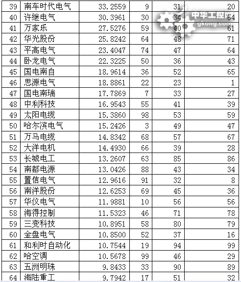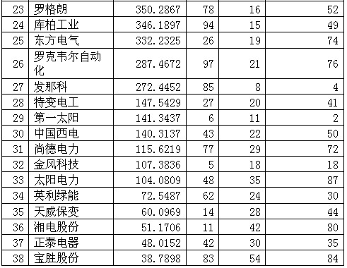 注:數據為2009年的數據;數據來源於上市公司的財務報表,部分企業數據采用了FORBE雜誌全球2000強的數據,排名按銷售額;和利時自動化的數據為截止2009年6月30日的年度數據;涉及到外幣轉換時,采用2009年12月31日外彙中間價,美元以100人民幣兌682.82美元計算;由於各方麵原因,世界範圍內的電氣上市公司有一定數量沒有進入這次排行。