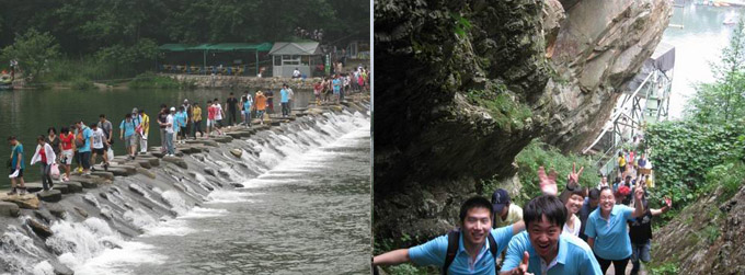 7月24-25日,在結束了普傳科技大連公司年中總結後,公司舉行了2天愉快難忘的“優聖美地·冰浴之旅”活動。部分員工家屬和供應商也參加了活動。 經過近4個小時240多公裏的旅途,終於到了位於莊河仙人洞的有“遼南第一漂”之稱的優聖美地。 “優聖美地”是一段長約7公裏的漂流聖地,全程需用時3小時,目前是遼南漂流河道最長的漂流項目,被稱為“遼南第一漂”。由於億萬年的衝刷,河水清澈見底,兩岸景色宜人,各種形態的鵝卵石遍布河穀。這裏植被豐富,森林覆蓋率達90%以上。 “大da自zi然ran的de鬼gui斧fu神shen工gong造zao就jiu的de奇qi峰feng怪guai石shi,令ling員yuan工gong賞shang心xin悅yue目mu,心xin曠kuang神shen怡yi。一yi條tiao蜿wan蜒yan流liu動dong的de河he,乘cheng著zhe橡xiang皮pi艇ting順shun流liu而er下xia,天tian高gao水shui長chang,四si麵mian青qing山shan環huan繞rao,漂piao流liu其qi間jian,迎ying麵mian而er來lai的de是shi一yi種zhong期qi待dai:期待刺激!期待驚險!期待與自然的搏鬥!期待“有驚無險”後的輕鬆! 精彩的是水中激戰,各種水槍、臉盆和水舀子都成了武器,不分男女,不分老總還是員工,隻要撞在一起,就是一場激戰,耳邊是水聲、笑聲、呐喊聲的交響曲,倍感暢快淋漓,什麼煩惱、憂愁、年齡、地位、身份統統忘掉,就是開心快樂的打呀、笑呀! 與大自然真正的融為一體,讓員工大呼過癮! 第二天是暢遊北方小桂林——冰峪溝。 冰峪溝風景區位於莊河市北部山區,全區約有110平方公裏龍華、攔馬、莢蓉三山屏蔽英納、小峪兩河盤繞。冰峪被冠以“東北小桂林”、“東北九寨溝”、“東方小瑞士”的美稱。冰峪的山既有北方山嶺粗獷豪放的氣勢,又有南國峰巒玲瓏秀美的風姿。區內有著典型的喀斯特地貌,奇峰嶙峋、溝穀幽深、溪潭澄澈、林茂花繁。景區內森林覆蓋率占90%以上,是國家級自然保護區和國家級森林公園。 員工在遊覽中觀賞了雲雀峰,花果山、孤帆石、雙龍彙、中流砥柱、仙人洞、通天洞、神女峰、金雕石、猛虎聽經、古猿聽濤等自然、人文景觀達百餘處, 感受到冰浴仙境雋秀處象玉樹臨風的江南才俊,柔靜時似窈窕娉婷的水鄉佳麗……。 下午載著快樂和滿足回到大連。