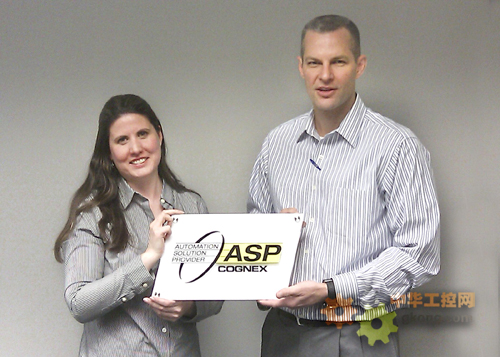 圖:康耐視公司渠道規劃經理Cristina Fein為美國弗吉尼亞裏士滿電氣設備公司—康耐視第400家合作夥伴頒發康耐視自動化解決方案提供商(ASP)紀念牌。