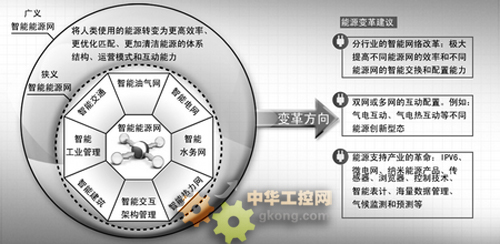 【導讀:智能能源網是指利用先進的通訊、傳感、儲能、新材料、航天、化工、微電子、海量數據優化管理和智能控製等技術,對傳統能源的流程架構體係進行革新改造和創新, 建構新型能源生產、消費的交互架構,形成不同能源網架間更高效率能源流的智能配置、智能交換,推動現有單向運轉的能源體係進化為生產、輸送、分配、使用、市場、運行、客戶、服務、遠期能源價格管理和監管、碳權利與低排放獎勵和不同能量網架之間優化整合互動的流程。】
