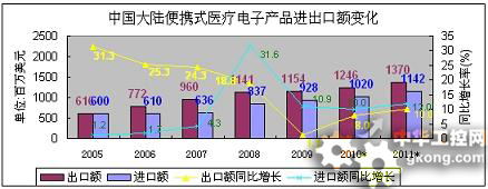 2.便攜式醫療電子產品出口額略大於進口,但進口額增長較快