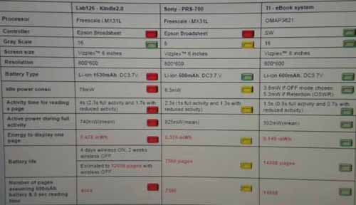 據介紹,這一方案與Kindle和SONY電子書相比功耗有顯著的降低,電池使用壽命高達14868次,將近SONY PRS-700的兩倍。