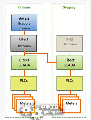 在圖3中,對於 Crinum 和Gregory 礦來說,均有不同的電能計量表計,連接到PLC,並通過Citect SCADA係統對數據進行監控,在此之上,係統建立了基於施耐德 Citect 的Historian數據庫,集成了兩個礦的電能及其他相關能源和生產數據,使用施耐德的 Citect/Ampla 平台對上述兩個礦的能源使用進行模型分析。