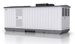 ABB兆瓦級光伏電站交鑰匙解決方案外觀上是一個箱體,裏麵安裝了全套能夠把光伏電站快速接入電網的電氣設備,包括兩台ABB新近推出的500千瓦中央逆變器、經過優化設計的變壓器、中壓開關、監測係統和接線盒。箱體擁有鋼結構水泥基座,可以確保係統在極端溫度和潮濕環境中正常工作。整個解決方案的設計壽命長達25年。