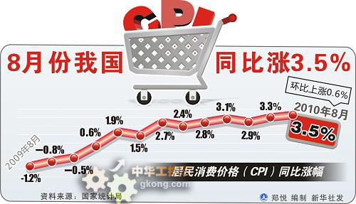 圖表:8月份我國CPI同比漲3.5% 新華社發