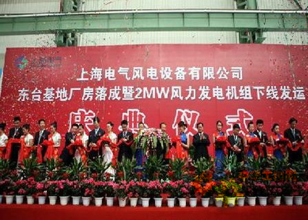 近日,上海電氣風電東台製造基地廠房落成暨2MW風力發電機組下線發運慶典儀式在被譽為“黃海明珠”的江蘇東台舉行。江蘇鹽城市委書記趙鵬和上海電氣(集團)總公司副董事長、上海電氣集團股份有限公司總裁黃迪南出席慶典儀式並作重要講話。