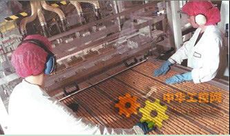 生產過程中,冷凍魚條由振動板送入,它可以將魚條整理成50排。 然後采用登記輸入測量紙盒到氣動站的距離,將魚條每次5包引導至包裝機。這個過程可以代替14個包裝工人,大大節省了人力。在魚條向振動板下方移動的時候,伺服電機從下邊提供魚條提升和分離的能量以防止它們粘住。