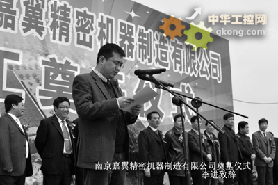 圖為南京嘉翼精密機器製造有限公司奠基儀式,董事長李進致辭。