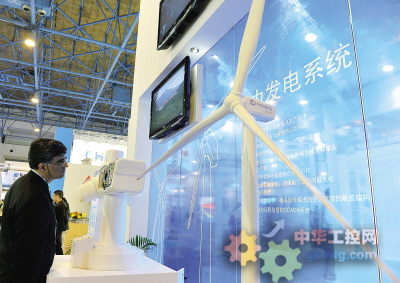 【導讀:10月19日,第十三屆國際電力設備及技術展覽會在北京中國國際展覽中心開幕。本屆展會麵積超過23000平米,為曆屆電力展之最。本次展會共有20個國家和地區的超過500家企業參展。國內外知名企業集中展示了發電、輸配電、智能電網、通信調度、電力自動化、節能減排技術設備等領域的電力工業新技術、新產品。圖為參展商展示綠色環保的新型風力發電解決方案。】