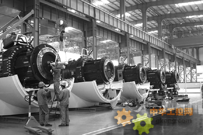 目前排名世界第三位的華銳風電,2009年向印度出口了10套1.5兆瓦的風電機組,並在今年3月從美國超導體公司購買了電氣係統,供其自主研發的5兆瓦風電機組使用。圖為華銳風電鹽城產業基地1.5兆瓦風電機組裝配現場。資料圖