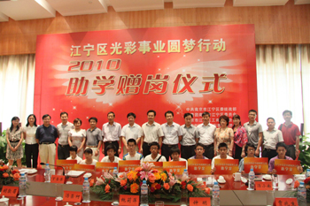 8月13日,區委統戰部、團區委、區工商聯和區光彩事業促進會聯合舉辦的“江寧區光彩事業圓夢行動助學贈崗儀式”隆重舉行,區委副書記毛衛華,副區長謝元,區政協副主席、區委統戰部部長、區光促會會長丁聖榮等出席活動。