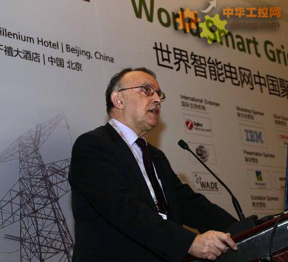 10月27日,國際大電網組織主席安德烈·梅林就歐洲智能電網發展以及其相關的能源政策所麵對的挑戰發表演講。新華社記者 高學餘攝