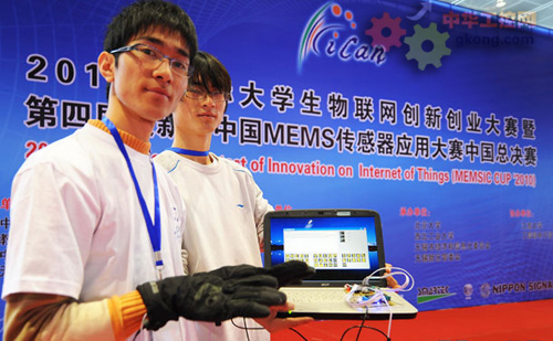 2010年10月28日——30日,為期3天的2010年國際大學生物聯網創新創業大賽暨第四屆美新杯中國MEMS傳感器應用大賽在無錫閉幕,來自全國各地及台灣和香港地區的80餘支代表隊在無錫太湖博覽中心進行了激烈角逐,最終來自北京大學及北京航空航天大學的“Freelancer動態交互係統”、華中科技大學的“基於加速度傳感器的文物自動保護裝置”、重慶大學的“窗寶”、鄭州大學的“魔力花”、南京理工大學的“踏浪鼠標”等五支高校代表隊脫穎而出榮獲特等獎,他們將代表中國參加明年六月舉行的第二屆微納米應用技術國際大賽。來自國防科技大學的“嬰語翻譯器”等12個作品獲得一等獎,大賽還評出二等獎、三等獎若幹名。