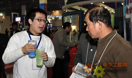 在中國國際物聯網博覽會大學生創意大賽上,一名大學生在展示智能輸液。