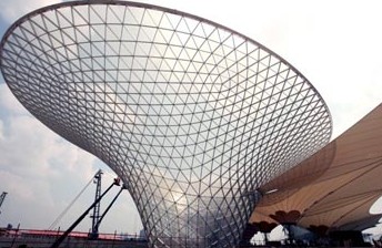 上海世博會世博軸“陽光穀”。上海世博園集成了大跨度索膜結構、“陽光穀”自然采光、雨水收集與回用、江水源和地源熱泵調控室溫以及冰蓄冷空調、光伏發電與建築一體化、透水地麵、垃圾氣力輸送、半導體照明、垂直生態綠化幕牆、節能電梯等一大批創新科技。新華社記者 任瓏 攝