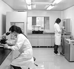 北京建築材料科學研究總院的科研人員正在抗菌實驗室工作。