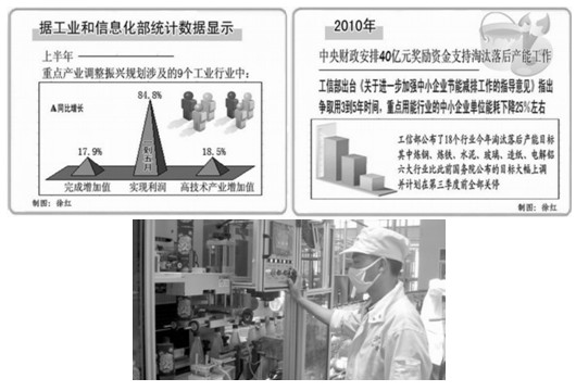 2010年,中央財政安排40億元獎勵資金,支持淘汰落後產能工作。今年2月,國務院下發《關於進一步加強淘汰落後產能工作的通知》;5月工信部公布了18個行業今年淘汰落後產能目標,其中煉鋼、煉鐵、水泥、玻璃、造紙、電解鋁六大行業比此前國務院公布的目標大幅上調,並計劃在第三季度前全部關停。