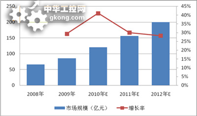 2008年中國RFID市場規模已經超過50億元,2009年實現了25%以上的增長,接近80億元的市場規模。基於相關數據的整理和分析,據中國物聯網研究發展中心預測,2010年中國RFID市場規模將達到120億元的規模,2012年有望達到200億元。