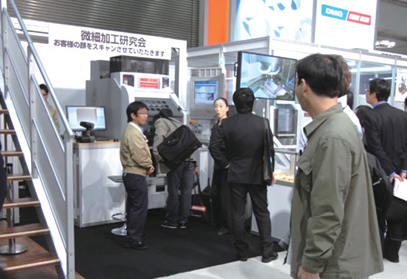 在(zai)展(zhan)會(hui)最(zui)後(hou)一(yi)天(tian),森(sen)精(jing)機(ji)展(zhan)台(tai)前(qian)排(pai)起(qi)了(le)長(chang)隊(dui)。這(zhe)些(xie)觀(guan)眾(zhong)都(dou)要(yao)參(can)加(jia)森(sen)精(jing)機(ji)現(xian)場(chang)人(ren)像(xiang)紀(ji)念(nian)章(zhang)加(jia)工(gong)演(yan)示(shi)的(de)活(huo)動(dong)。在(zai)眾(zhong)人(ren)的(de)圍(wei)觀(guan)下(xia),而(er)該(gai)機(ji)床(chuang)展(zhan)示(shi)了(le)采(cai)用(yong)快(kuai)速(su)成(cheng)型(xing)(RapidPrototyping)用數據形式“STL”,來讀取物體的三維形狀並利用機床進行切削加工的技術,令觀眾耳目一新。