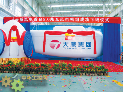 天威風電公司首台葉輪直徑為93米的2兆瓦風電機組成功下線