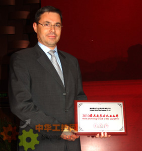 中國北京,2010年11月18日 - 全球能效管理專家施耐德電氣今日亮相2010中國水博會,並在同期舉行的第五屆中國(國際)水務高峰論壇上榮膺 “2010年最具成長力水業品牌獎”——這一業內最重要的國家級獎項。此次評選活動由中國水利部發起、中(zhong)國(guo)水(shui)利(li)學(xue)會(hui)主(zhu)辦(ban),經(jing)社(she)會(hui)各(ge)界(jie)推(tui)薦(jian)和(he)頂(ding)級(ji)專(zhuan)家(jia)團(tuan)評(ping)審(shen),充(chong)分(fen)肯(ken)定(ding)了(le)施(shi)耐(nai)德(de)電(dian)氣(qi)的(de)創(chuang)新(xin)解(jie)決(jue)方(fang)案(an)及(ji)在(zai)水(shui)行(xing)業(ye)能(neng)效(xiao)管(guan)理(li)方(fang)麵(mian)做(zuo)出(chu)的(de)突(tu)出(chu)貢(gong)獻(xian)。