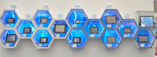 地台上展示的是威綸通從創立至走向國際化的風雲曆程:1995年,這個日後被譽為“金牌人機界麵專家”的公司誕生了;1996年,產品進入市場;1997年,拓展海外市場……2000年至2003年,MT500係列產品銷售贏得海外及中國市場滿堂紅……一路行來,2010年,“金牌服務”啟動,威綸通至此在品牌化全球化的大道上高歌猛進。