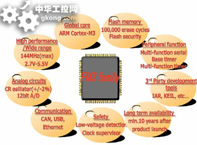 ARM內核一貫以其良好的產業生態係統(在全球擁有700多家第三方供應商)和低功耗而著稱,而隨著32位Cortex MCU不斷向“亞1美元”價位逼近,它們在替代8位、16位MCU的戰役中捷報頻傳。這正是富士通半導體開始布局通用內核MCU的主要原因之一。“我們看到了市場對Cortex的需求,隨著產品研發周期日益縮短,客戶希望采用更加便利的平台,ARM良好的產業生態係統使其開發工具、中間件、驅動器等非常容易獲得,這是專用內核無法比擬的優勢。FM3 MCU可以讓富士通的獨特技術優勢惠及更廣泛的客戶群。”富士通市場部負責人表示。