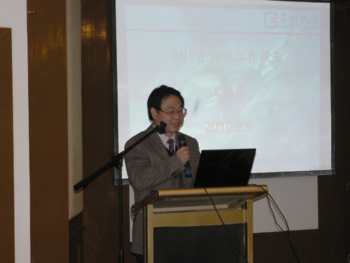 下午15:00會議正式開始,各部門領導對過去一年的工作進行總結,並提出2010年新的工作目標和要求。總經理王竹平在總結會議上提出:辰竹儀表將給每個員工提供一個平台,希望通過企業發展實現每個員工的人生價值!會議最後對2009年度優秀項目、優秀集體、優秀個人、科技創新項目等進行表彰,感謝他們在過去一年裏為公司發展付出的辛苦努力。