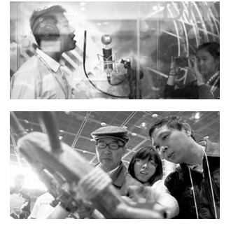 上圖 2010中國國際信息展覽會上,參觀者在音樂DIY工作間錄製歌曲。展覽會以“創新引領發展、融合成就未來”為主題,三網融合、3G應用、4G前瞻性技術開拓等成為本屆展覽會的亮點。(新華社發)