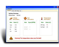 Xcare™是由新漢開發的全新自動化係統軟件,具備管理和加強監測以及控製係統狀態異常的功能,是專為Intel® Atom™ D525 CPU應用配套而設計。Xcare™允(yun)許(xu)用(yong)戶(hu)讀(du)取(qu)和(he)設(she)置(zhi)硬(ying)件(jian)參(can)數(shu)範(fan)圍(wei),以(yi)提(ti)高(gao)實(shi)時(shi)管(guan)理(li),減(jian)少(shao)人(ren)力(li)資(zi)源(yuan),如(ru)風(feng)扇(shan)轉(zhuan)速(su),溫(wen)度(du),電(dian)壓(ya)等(deng),如(ru)果(guo)監(jian)測(ce)項(xiang)目(mu)超(chao)過(guo)設(she)定(ding)的(de)範(fan)圍(wei),則(ze)立(li)即(ji)激(ji)活(huo)一(yi)個(ge)彈(dan)出(chu)警(jing)告(gao)。