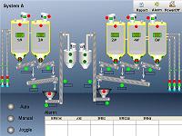 本係統設計包含兩個人機界麵,分別用來顯示System A和System B中筒倉的料位和進出料情況以及其它各個部件的運作情況。System A由7個用來裝載OPC的筒倉和1個用來裝載PFA的筒倉組成,System B由4個用來裝載OPC的筒倉和1個用來裝載PFA的筒倉組成。