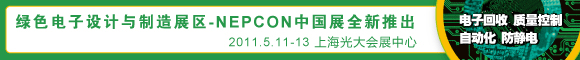 順應中國電子製造市場最新發展趨勢,NEPCON China 2011電子展現場將開設綠色電子製造展區,主要展示綠色、節能、環保的相關設備、產品和服務,旨在為供應商提供一個及時有效的平台向電子產品製造商推廣綠色製造的整體解決方案。該展區包括四大類展品:綠色電子回收、質量控製、自動化和防靜電,是目前中國唯一為電子產品製造商提供綠色解決方案以使整個製造過程更高效,更節能,更人性化,同時為設備、材料、fuwugongyingshangyuxinyingyonglingyumaijiadajianyigeyouxiaodeshangmaopingtai。laizihangzhousanlingshuyuanyidongtongxinshebeiyouxiangongsidechenjianhuazongjinglibiaoshixiangtongguozheyizhanquxunzhaodaozhuanyedezhengguidianzihuishougongsifuwubingxiangcanyuxianchanglvsehuishouyanjiang;而UT 斯達康通訊有限公司高級總監施明也對此展區興趣十足,認為公司今年正在投入大量精力在綠色電子回收項目上,並想通過展會與正規、專業的回收公司進行接洽、尋求合作。