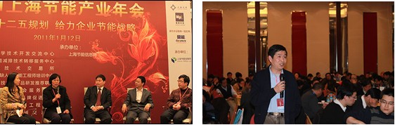 在多場專家和企業的主題演講之後,年會最後一個環節是十分精彩的嘉賓互動。上海市綠色工業促進會會長沙尚之、浦發銀行總經理林江、上海錦天城律師事務所律師丁先雲、上海米其林回力輪胎股份有限公司能源經理黃海濤等嘉賓分別以“給力”為題討論在2011年為節能產業給力,現場討論氣氛非常熱烈。