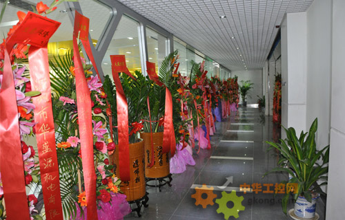 四方電氣新居走廊擺滿恭賀花籃
