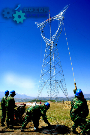 “西電東送”主通道之一——750千伏拉西瓦水電站至官亭變電站輸電工程施工現場。