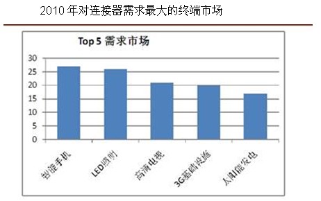 連接器的應用領域不斷擴大,醫療應用有望躋身前五。有統計數據顯示,全球連接器銷售位居前五位的應用領域分別是:汽車、電腦及其外設、通信、工業設備和航天與軍用,而增幅位居前五的應用則是消費電子、交通電子、醫療電子、通信電子、計算機及外設。因此,醫療電子將成為連接器應用的新的增長點。有業內人士預計到2011年,醫療領域的連接器市場將達到16.3億美元