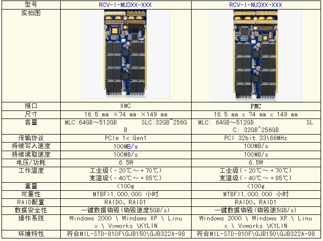 源科RunCore旗下軍工類磐龍係列PMC 和XMC固體存儲卡是一款高性能高可靠性的基於NAND FLASH 技術的存儲設備,該卡擁有兩個獨立的SATA存儲通道,並通過PCI-SATA RAID 控製器提供RAID0 和RAID1 功能,可以實現512GB 的最大存儲容量。PMC采用PCI 傳輸協議,支持32bit336MHz 傳輸方式,支持PMC(IEEE1386.1) 協議,XMC采用PCIe 傳輸協議,支持PCIe1x 傳輸模式,支持XMC(VITA42.3) 協議。兩者持續讀取和寫入速度均可達100MB/s。並都提供一鍵快速數據銷毀功能,提供極高的數據安全特性。可以廣泛應用於CPCI、VME、ATCA 等係統以及軍事航空航天領域。