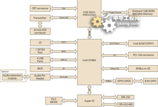 繼2010年推出基於Intel Atom N450的PC/104嵌入式主板之後,2011新年伊始,研華科技發布旗下最新款Atom係列PC/104嵌入式主板PCM-3363。PCM-3363搭載了Intel Atom N455/D525低功耗處理器,整板最大功耗不超過10W以及13W,板載1GB DDR3內存,支持24位LVDS以及VGA的顯示信號輸出,千兆網口,音頻輸出,PCI-104總線擴展,支持CF,工作溫度-40~85C° 。