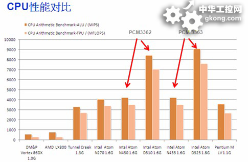 以下是PCM-3363的性能對比,從圖中我們可以看到,在PC/104嵌入式主板的諸多平台中,PCM-3363的性能表現最好,它的發布無疑是有力的填補了PC/104嵌入式主板中沒有低功耗高性能平台的空白,給係統集成商及工程師們帶來了一個很好的選擇。