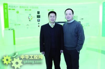 張廣宏(右)與劉保華探討施奈德電氣“以用戶為中心”的理念